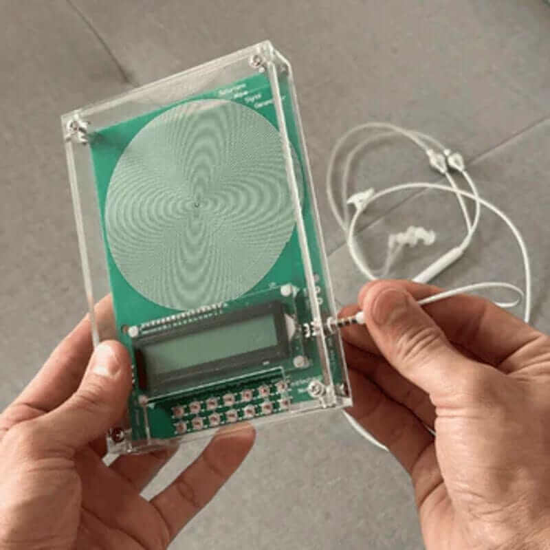 The device generates frequencies in the form of subtle signals. You can either diffuse them into the surrounding space or listen to them directly through connected headphones or speakers.