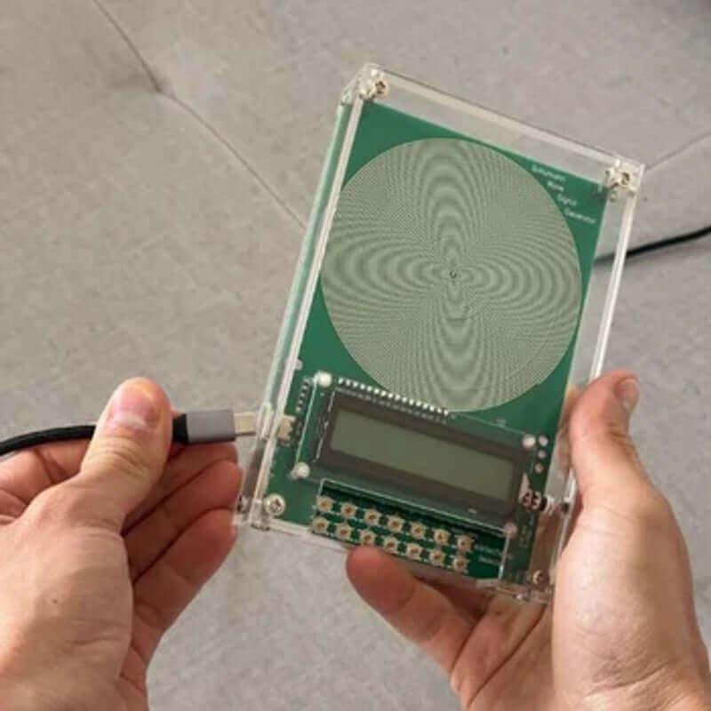 Connect the USB-C cable to your device and a power source to activate the frequency generator.